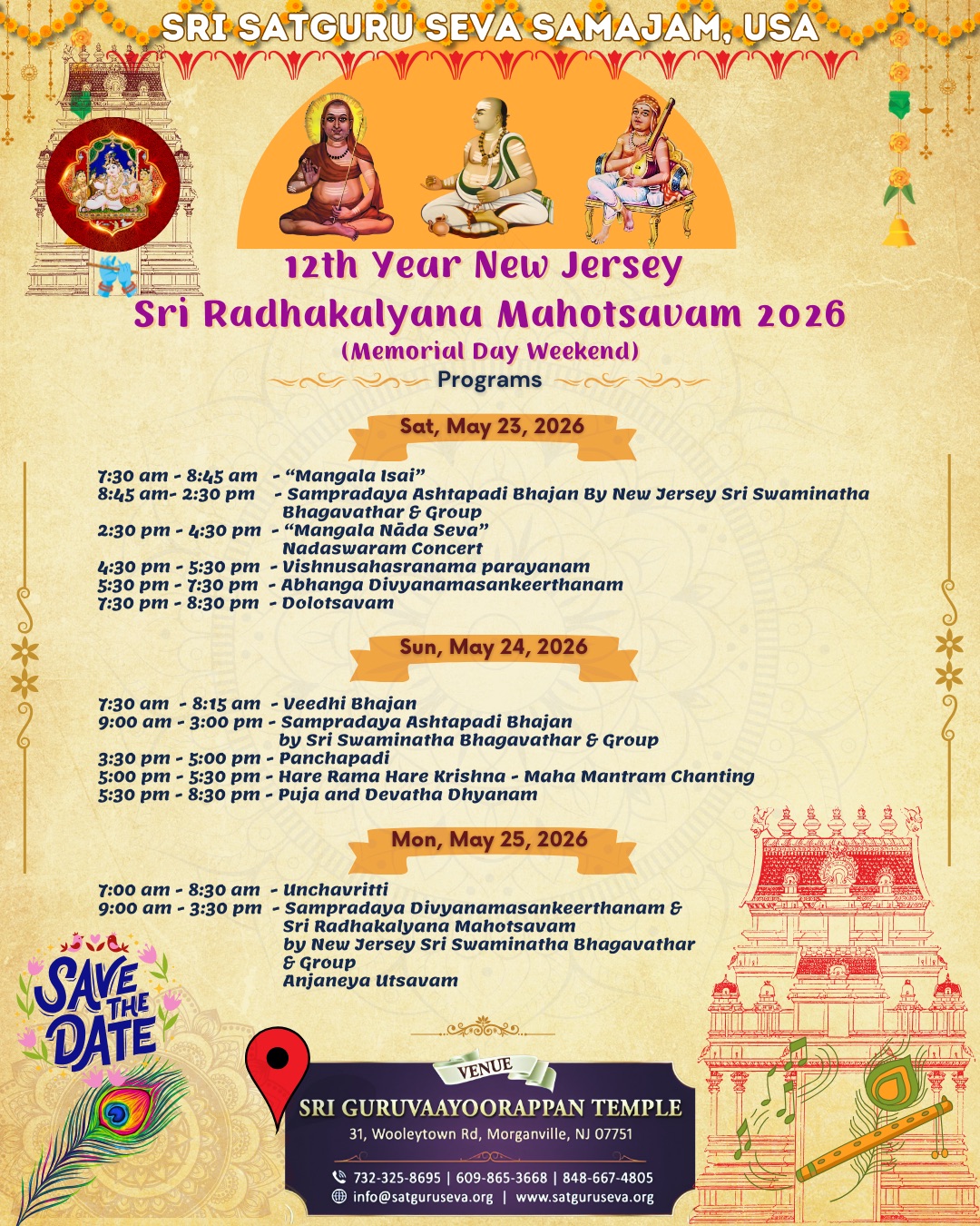 As we approach the 10th anniversary of our Sri Radhakalyana Mahotsavam in New Jersey, we are seeking volunteers to assist us in a range of activities during this blissful occasion taking place on Memorial Day Weekend from May 25th to 27th, 2024.